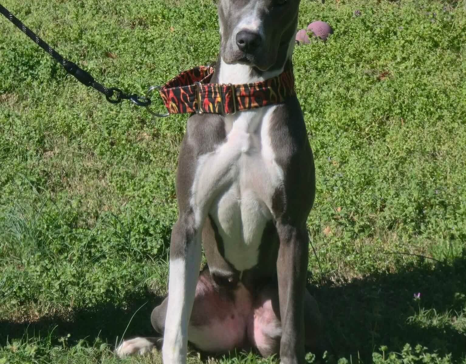 Nina is being fostered in Asheville NC. If interested in adopting you can email us at info@greatdanefriends.com for an application. Since Nina LOVES to play and zoom and fenced yard is required to keep this active puppy safe.