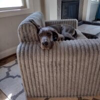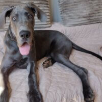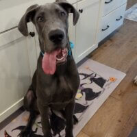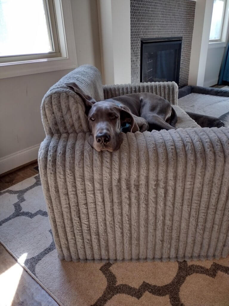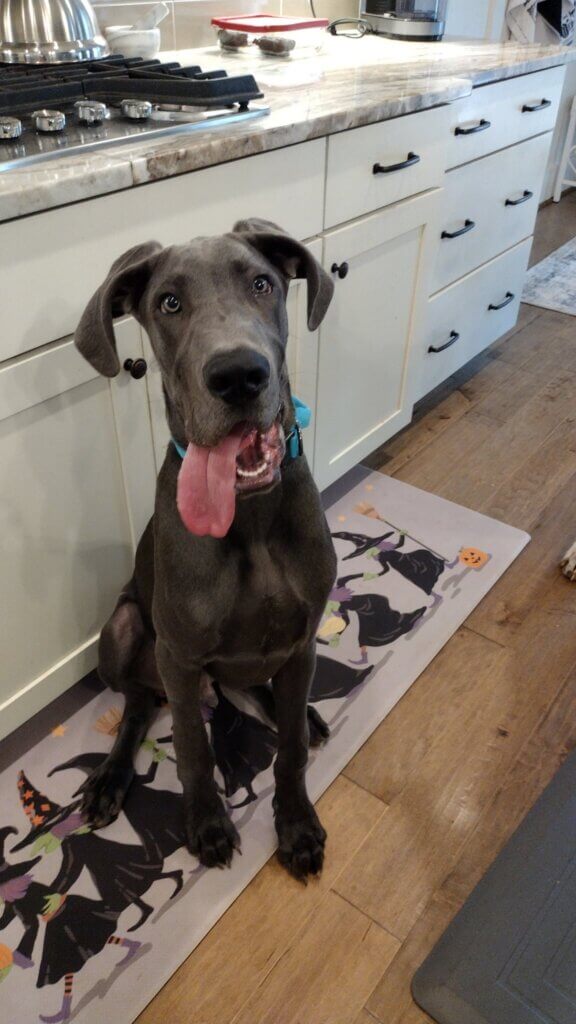 Koa came to us when his college-student owner realized she didn’t have the time to give him the consistency he deserves. With lots of travel and bouncing between Rover stays, family, and friends, Koa hasn’t had much structure in his young life — but he’s soaking it up beautifully in his foster home. Like many adolescent Danes, Koa is in that “bratty teenager” phase.