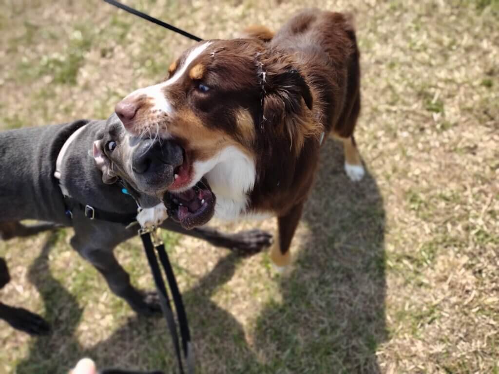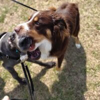 He’s not aggressive in any way — just big, bouncy, and a little over-zealous. If another confident dog tells him “no thank you,” he’s very respectful. But if a dog runs? Well… he thinks it’s playtime!