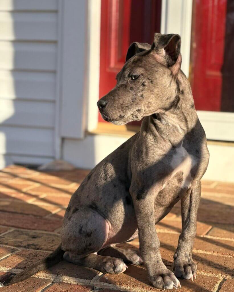 Meet Poppy, a 4 month old tiny speckled sweetheart with a whole lot of love packed into her soft, spotted coat! She may be small right now, but this Great Dane/Cane Corso/American Pitbull/Husky mix has big-dog dreams—and even bigger cuddles.
